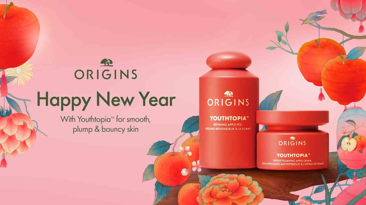 Origins had three KV's in mind, each design was to celebrate different hero ingredients like ginseng, Swiss apples, Reishi mushrooms, Anogeissus Flowers and ginger, according to the product that was featured.